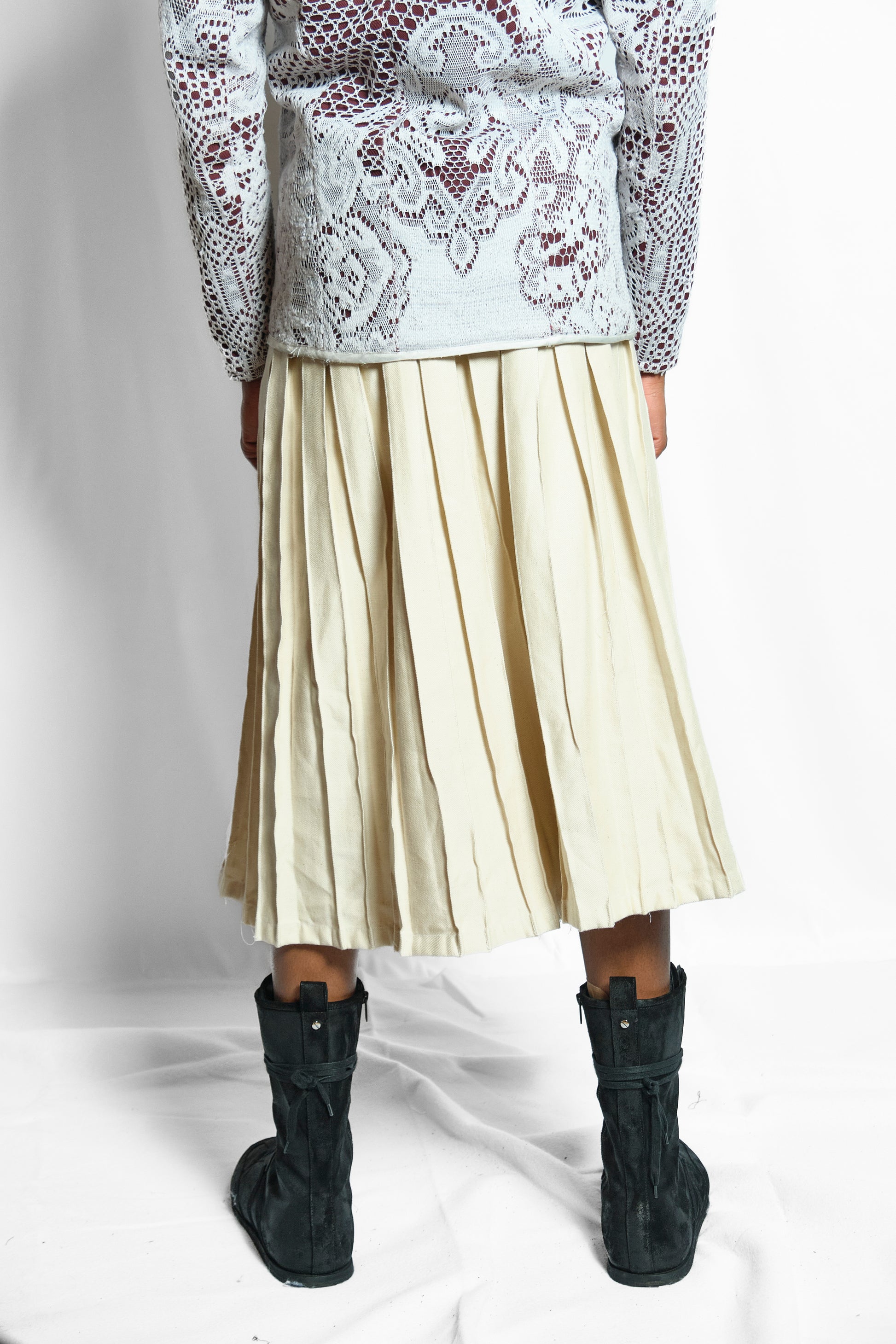 100% cotton non-indigo selvedge denim, zip fly fastening, shorts silhouette in front and pleated skirt look in the back, featuring recycled leather MEDMO embroidery patch. every pleat is top-stitched (a medmo signature) to ensure crisp pleats with every wear